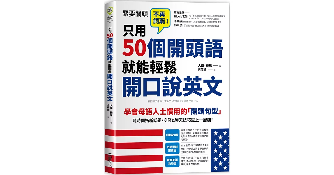 博客來-只用50個開頭語,就能輕鬆開口說英文訂購網址: https://www.books.com.tw/exep/assp.php/87926/products/0010819677?utm_source=87926&utm_medium=ap-books&utm_content=recommend&utm_campaign=ap-201905