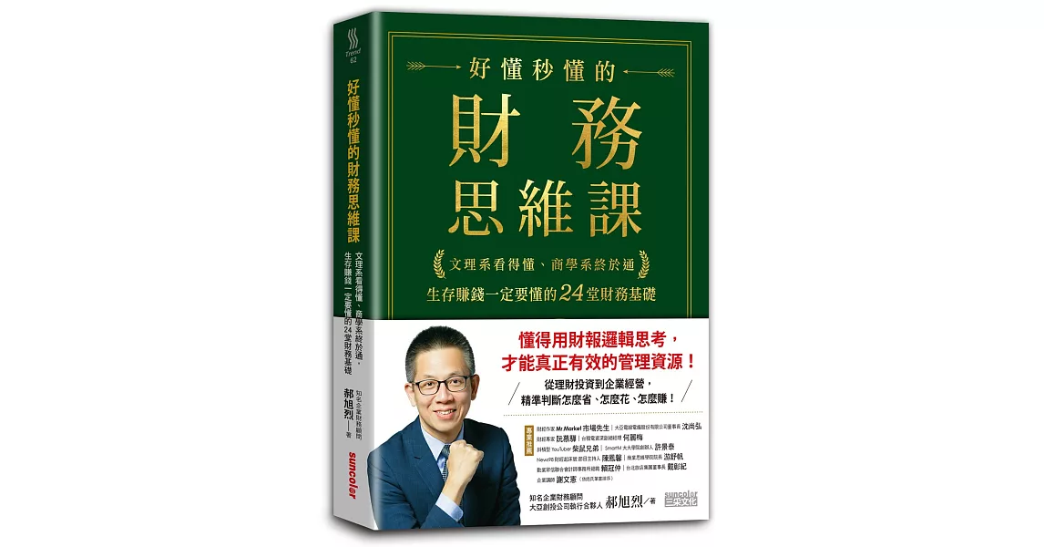 對於想要有正確財務思維的職場工作者,本書一方面可提醒自己做決策時,不要武斷,要用財務思維去做判斷;另一方面當你愈懂財報工具,也愈能清楚自己的價值、產值。當你擁有這一本好懂秒懂的財務思維寶典,你也將踏上人生財務自由之路!──SmartM大大學院創辦人 許景泰