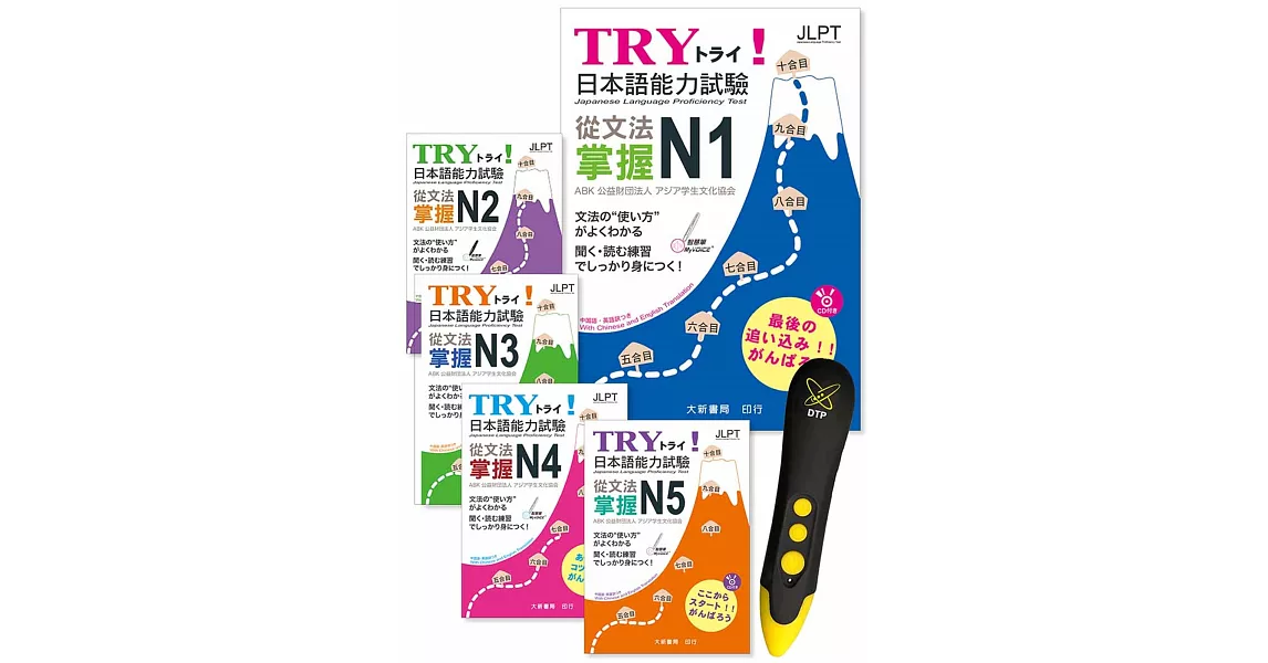 博客來-TRY!日本語能力試驗 從文法掌握 N5~N1 DTP鋰電點讀筆學習套組訂購網址: https://www.books.com.tw/exep/assp.php/87926/products/0010875749?utm_source=87926&utm_medium=ap-books&utm_content=recommend&utm_campaign=ap-201906