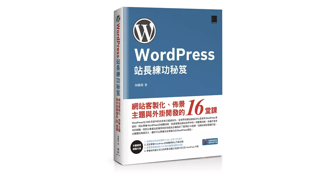 博客來-WordPress站長練功秘笈:網站客製化、佈景主題與外掛開發的16堂課訂購網址: https://www.books.com.tw/exep/assp.php/87926/products/0010750919?utm_source=87926&utm_medium=ap-books&utm_content=recommend&utm_campaign=ap-202002