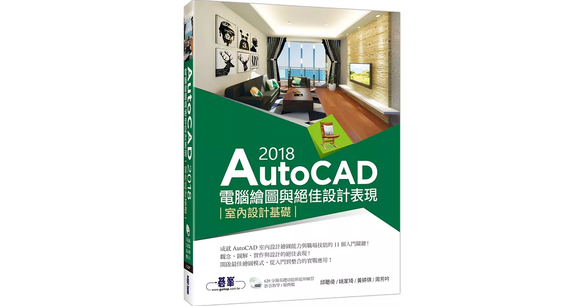 商品說明: AutoCAD 2018電腦繪圖與絕佳設計表現:室內設計基礎(附620分鐘基礎影音教學/範例檔)