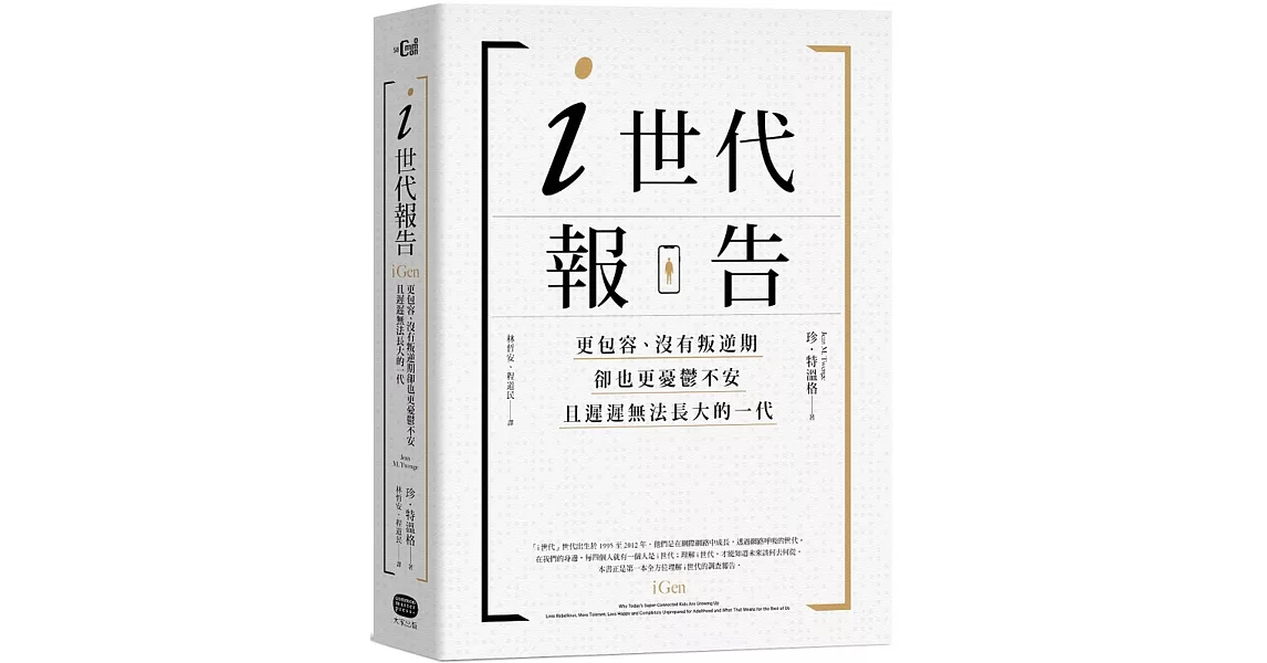 博客來-i世代報告:更包容、沒有叛逆期,卻也更憂鬱不安,且遲遲無法長大的一代訂購網址: https://www.books.com.tw/exep/assp.php/87926/products/0010853127?utm_source=87926&utm_medium=ap-books&utm_content=recommend&utm_campaign=ap-202002
