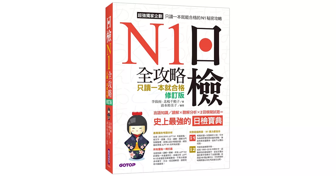 博客來-日檢N1全攻略:言語知識/讀解+聽解 只讀一本就合格(附MP3)(修訂版)訂購網址: https://www.books.com.tw/exep/assp.php/87926/products/0010853310?utm_source=87926&utm_medium=ap-books&utm_content=recommend&utm_campaign=ap-201906
