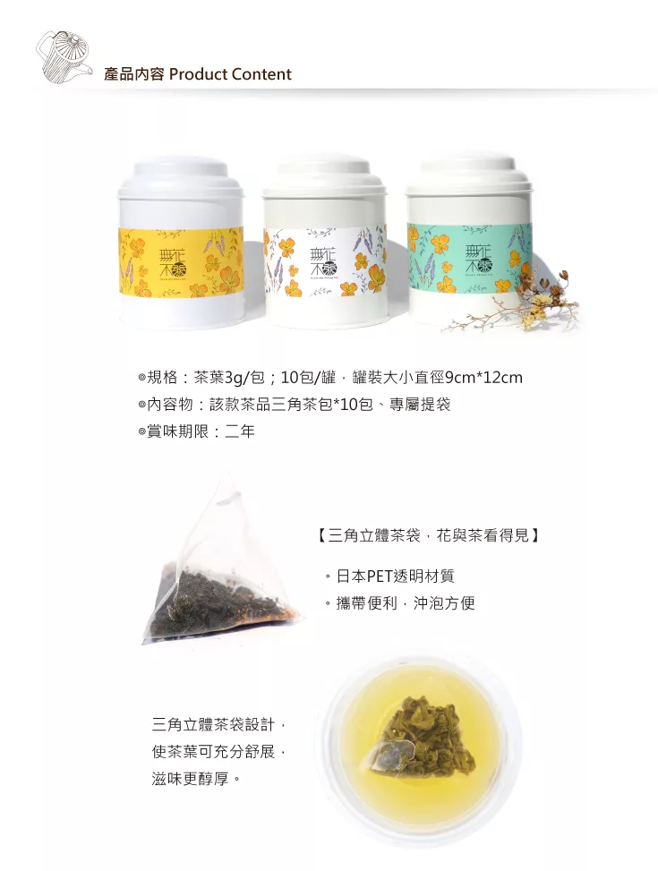 商品描述: 【無藏嚴選】無花不茶-原葉三角立體茶包10入裝*2罐 – 共11款可選擇凍頂烏龍