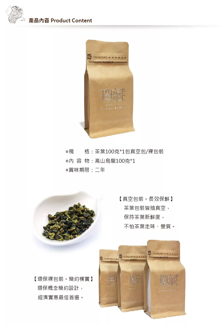 商品說明: ◆阿里山白毫烏龍茶◆夢想之路—100g裸包裝