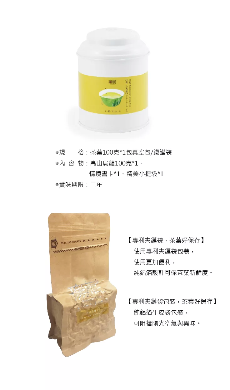 》》內容物:高山烏龍茶 100g/鐵罐裝 附提袋/情境書卡*1