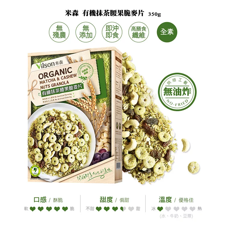 →→→→更多詳細”【米森】有機抹茶腰果脆麥片(350g/盒)”介紹請點我