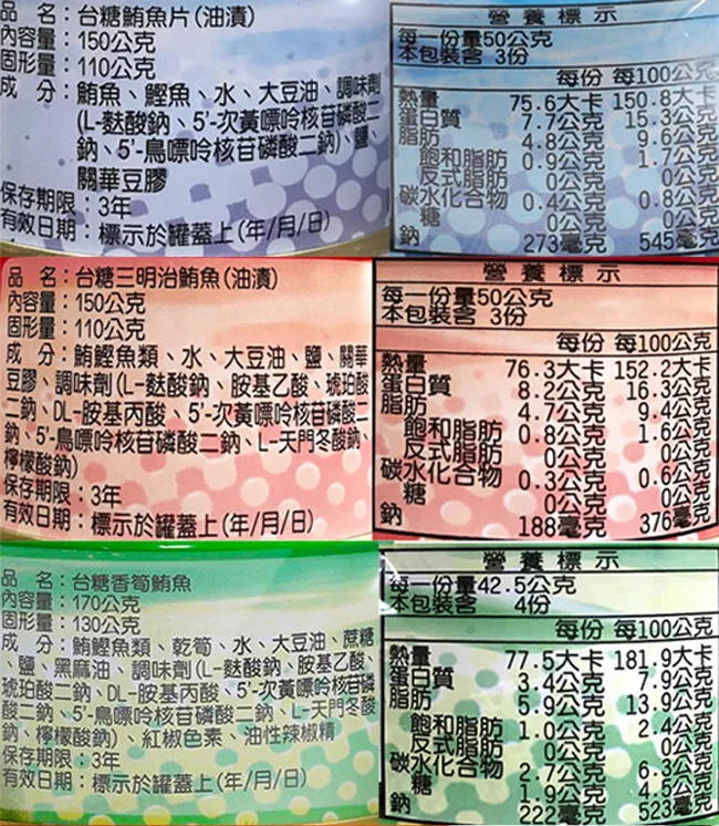 →→→→更多詳細”台糖安心豚澎湃罐頭8件組(三明治鮪魚/香筍鮪魚/鮪魚片/五香肉醬/香辣肉醬/紅燒鰻/豆豉鰻/鳳梨罐)”介紹請點我