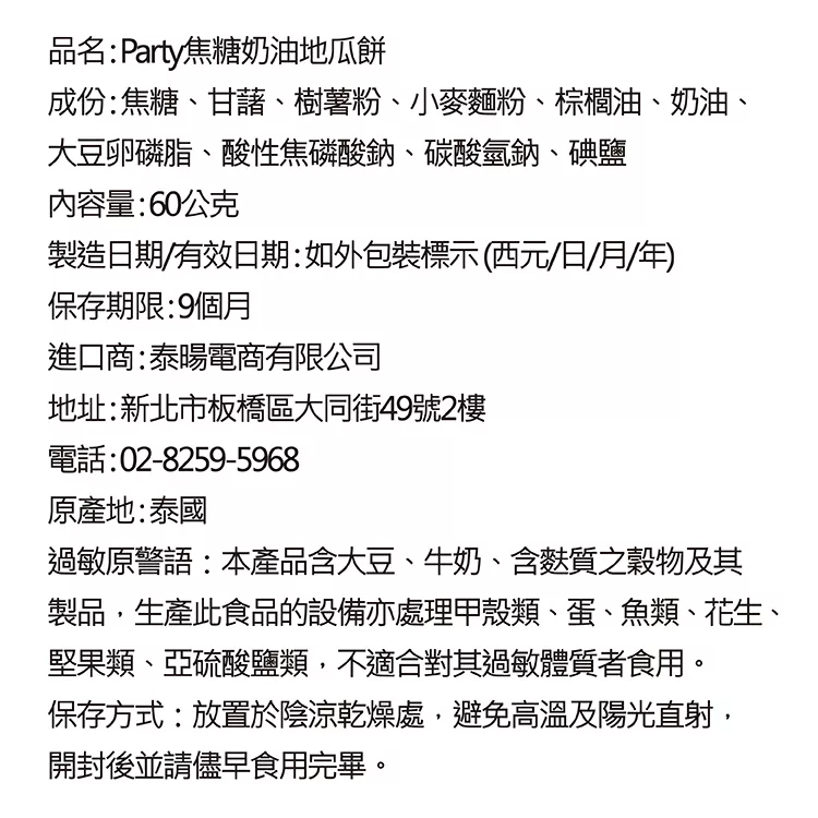 商品描述: 【泰國】Party 焦糖奶油地瓜餅60g