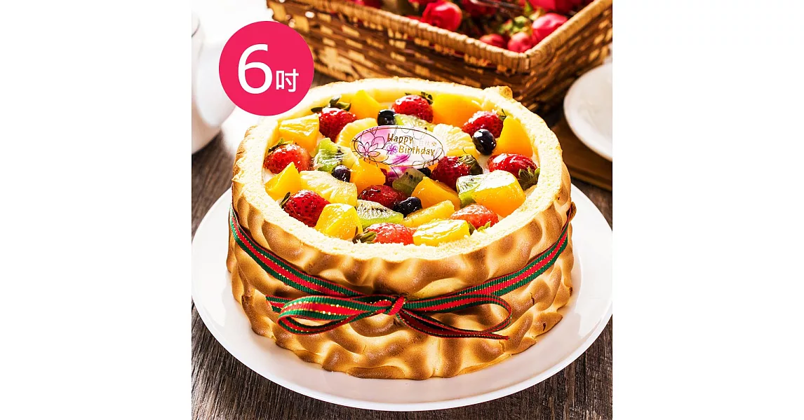 網路蛋糕訂購-預購-樂活e棧-生日快樂蛋糕-虎皮百匯蛋糕(6吋/顆,共1顆)芋頭x布丁網路便宜購買推薦