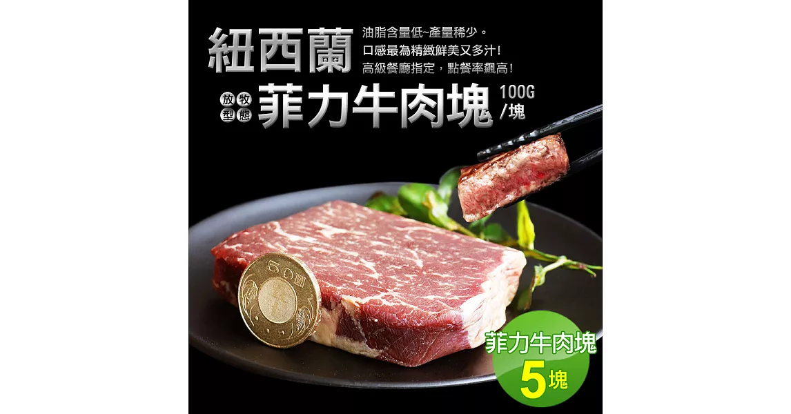 商品說明: 【優鮮配】紐西蘭草飼菲力牛排5片組(100g/片) 免運