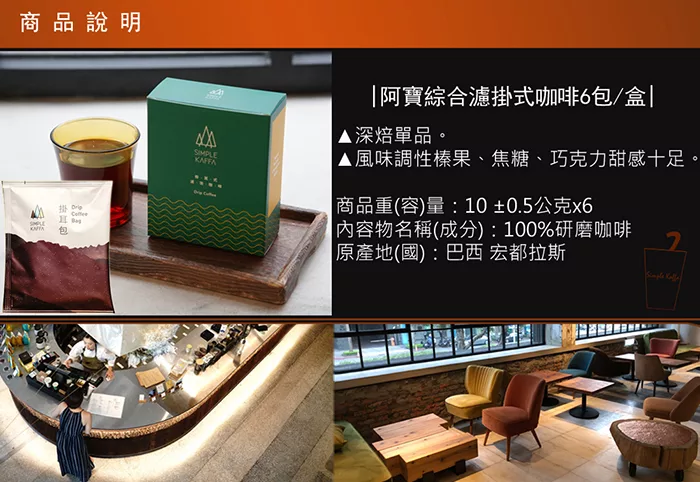 →→→→更多詳細”【Simple Kaffa】 古吉日曬濾掛式咖啡6包組 /世界冠軍吳則霖嚴選”介紹請點我