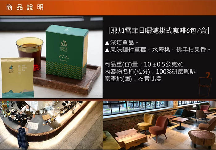 商品說明: 【Simple Kaffa】 古吉日曬濾掛式咖啡6包組 /世界冠軍吳則霖嚴選