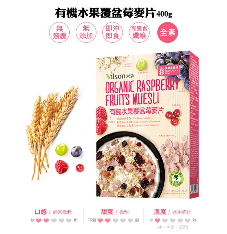 →→→→更多詳細”【米森】有機水果覆盆莓麥片(400g /盒)”介紹請點我