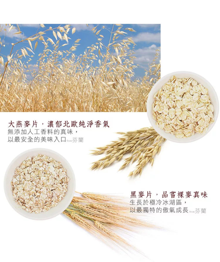 商品描述: 米森有機水果覆盆莓麥片「榖脆片X綜合水果」層次豐富新口感米森特選來自芬蘭的有機穀麥片,獨特的冰湖地形,形成天然純淨的環境條件,並利用春夏溫暖時期,引用無汙染冰湖雪水灌溉,蘊育出麥香濃郁且飽滿的有機穀麥。經過篩選、清洗、碾製、蒸熟等現代自動化製程,最後製作成有機大燕麥片及有機黑麥片。並加入有機鮮果乾:有機蔓越莓、有機葡萄乾、有機金黃葡萄乾、有機覆盆莓及特製有機覆盆莓榖脆片調配成口感香脆且豐富水果的……