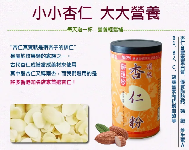 博客來-《御復珍》頂級杏仁茶 (450g 罐)訂購網址: https://www.books.com.tw/exep/assp.php/87926/products/N000403596?utm_source=87926&utm_medium=ap-books&utm_content=recommend&utm_campaign=ap-202002