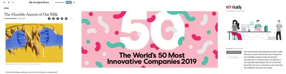 OATLY的使命和成功,引起大範圍的媒體報導,包括紐約時報在內的大量知名媒體主動報導OATLY和 plant-based diet風潮席卷全球。