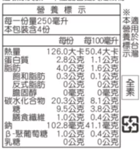 注意事項:飲用前請搖勻,如有沉澱為燕麥成分可能產生的現象。
