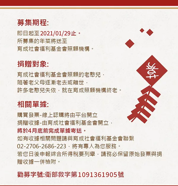 →→→→更多詳細”預購《育成基金會x娘家廚房CK》老憨兒圍爐計畫-愛心年菜募集(購買者不會收到商品)”介紹請點我