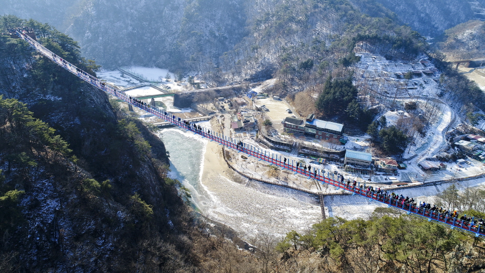 索橋設置在100米高的懸崖上,全長200米,是全韓國最長的橋。韓綜《無限挑戰》委派了有嚴重畏高癥的劉在石在橋上打掃,令人氣更高企,開幕不久已吸引10萬名遊客到訪!在橋上可以飽覽蟾江、原州市和京畿道良洞地區的美景,底下還有溪流。