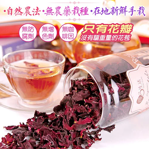 網購飲品飲料好喝推薦-玫瑰花瓣茶四罐組(天然花青素 純花瓣無花苞 無農藥栽種)最多人推薦購買