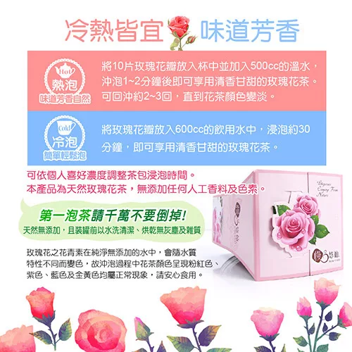 商品描述: 玫瑰花瓣茶四罐組(天然花青素 純花瓣無花苞 無農藥栽種)