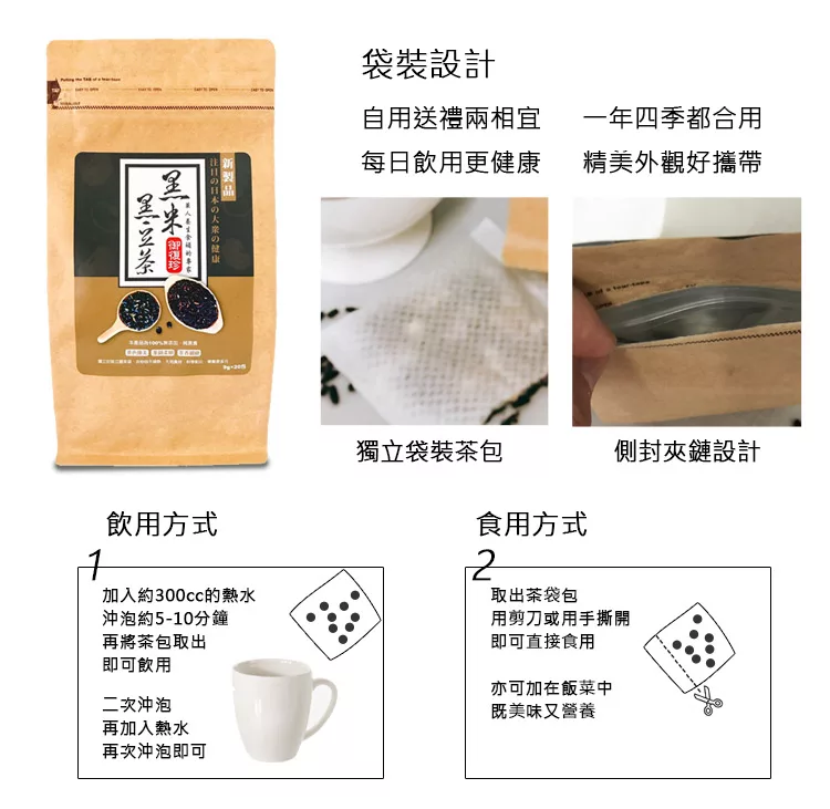 商品說明: 《御復珍》黑米黑豆茶 (20包/袋)
