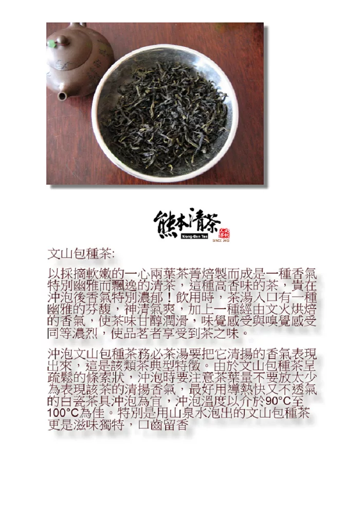 商品說明: 熊本清茶 坪林文山包種原片式茶包30入 (產地直銷)