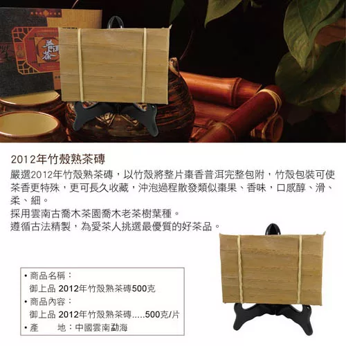 商品說明: 《御上品》 2012年竹殼熟茶磚500克